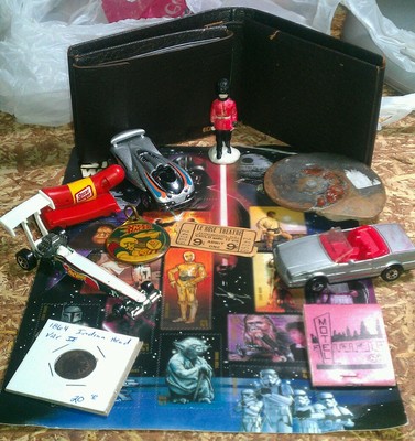 Title (ebay affiliate link): Vintage Junk Drawer Lot.Indian Penny,Star Wars,Ammonite,HickokWallet,SpeedRacer