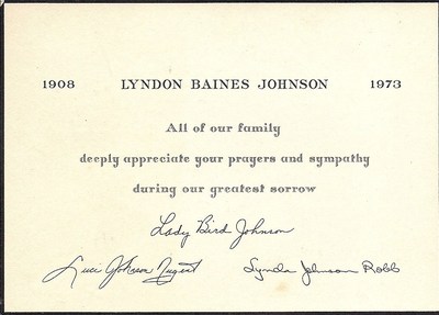 1973 LYNDON JOHNSON FUNERAL APPRECIATION CARD