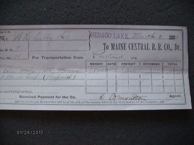 Title (ebay affiliate link): MAINE CENTRAL RAILROAD 1889 FREIGHT RECEIPT SEBAGO LAKE MAINE