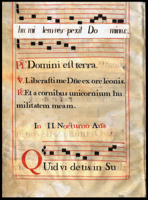 Title (ebay affiliate link): 1650 Large Spanish Breviary Leaf Antiphoner Music Vellum Medieval 24th Psalm