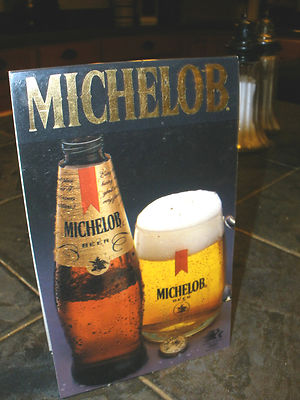 Vintage Michelob Beer Glossy Table Top Advertising Display Tent Sign - 1984