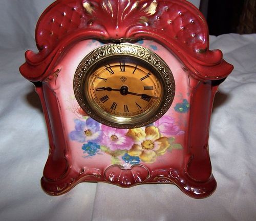 Title (ebay affiliate link): ANTIQUE ROYAL BONN PORCELAIN SHELF MANTLE CLOCK ANSONIA "GLORY" CAST 2940 WORKS