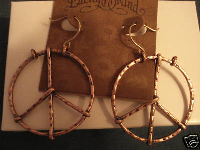 Lucky Brand Antique Copper Peace Sign Earrings