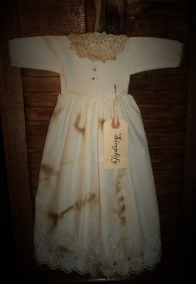 Title (ebay affiliate link): GRUNGY PRIMITIVE WALL~CUPBOARD DOLL DRESS ECRU EMBROIDERED HEARTS ~FOLK~DECO