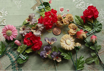 Title (ebay affiliate link): VINTAGE MILLINERY LOT FLOWER DOLLS UNIQUE TYPES TINY PANSIES ROSES DAISIES HATS