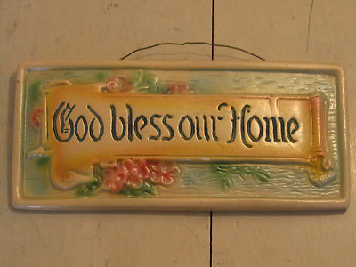 VINTAGE CHALKWARE PLAQUE "GOD BLESS OUR HOME: