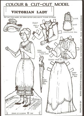 VICTORIAN FAMILY PAPER DOLL SHEETS TO CUT AND COLOUR UK 1988