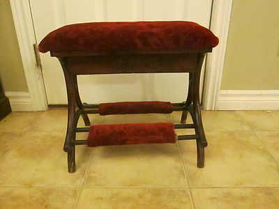 Antique Victorian 1887 Foot Stool Prayer Bench Kneeler Bentwood Upholstered NICE