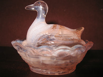 Title (ebay affiliate link): Pink and Milk slag glass salt cellar celt duck on nest basket dip boyd art swan