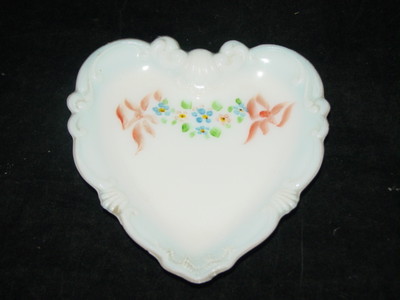 Title (ebay affiliate link): VINTAGE HAND PAINTED VANITY DRESSER DISH HEART SHAPED MILK GLASS OPAQUE