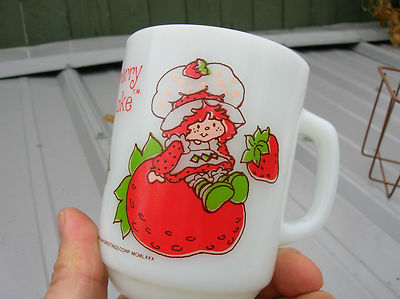Title (ebay affiliate link): Vintage Anchor Hocking Milk Glass Strawberry Shortcake Coffee Mug Advertising