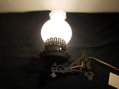 ANTIQUE CAST IRON WALL SCONSE, WITH MILK GLASS SHADE