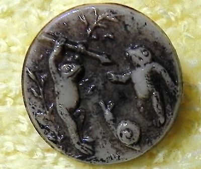 DYED MILK GLASS PICTURE BUTTON - FROGS FIGHTING - sml
