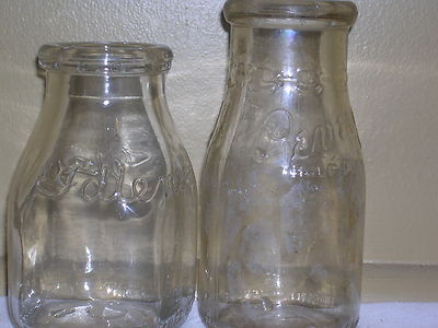 2 UNIQUE HALF PINTS PEVELY ST.LOUIS,MO. ,IDLEMOT 17-57-EMBOSSED,THICK GLASS