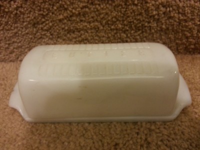 VINTAGE Milk White 1/4 lb COVERED EMBOSSED BUTTER DISH