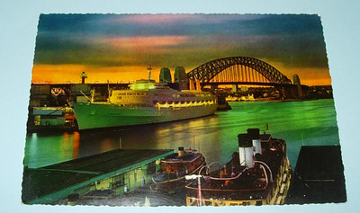 Title (ebay affiliate link): POSTCARD, SS CANBERRA BERTHED AT SYDNEY HARBOUR WITH MANLY FERRY AT TWILIGHT