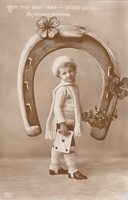 Title (ebay affiliate link): CHARMING CARD OF A BOY IN FRONT OF A LARGE HORSESHOE* E A SCHWERDTFEGER & CO