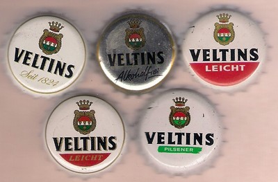 bottle caps beer GERMANY used bottle cap BEER 5 diff. set -VELTINS OLD CAPS-
