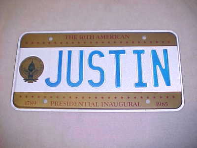 Title (ebay affiliate link): 1985 JUSTIN Vanity Ronald Reagan Inauguration Washington DC License Plate uncirc