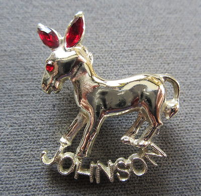 Title (ebay affiliate link): VINTAGE " JOHNSON " POLITICAL CAMPAIGN PIN DONKEY PIN WITH NAME " JOHNSON "