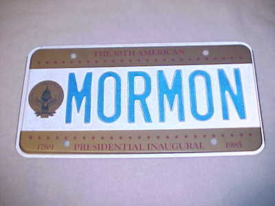 1985 MORMAN Vanity Ronald Reagan Inauguration Washington DC License Plate uncirc