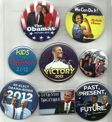COLLECTION OF 8 BARACK, MICHELLE OBAMA 2012 POLITICAL PINS