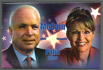 John McCain political campaign button, Sarah Palin
