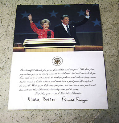 Title (ebay affiliate link): Ronald Regan & Nancy Regan signed White House First Term Support Thank You Card