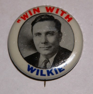1940 Win With Wilkie pinback button pin