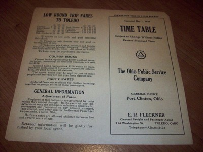 Time Table May 1 1938 Port Clinton, Ohio Rail Road