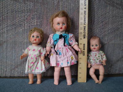 Antique rubber dolls, lot of 3, Wieghted eyes