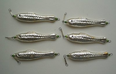 Title (ebay affiliate link): LOT OF 6 VINTAGE MERCURY GLASS BEADED FISH CHRISTMAS ORNAMENTS