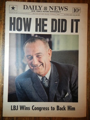 Title (ebay affiliate link): Lyndon B Johnson LBJ Wins New York Daily News Nov 5 1964 1st Color Front & Back