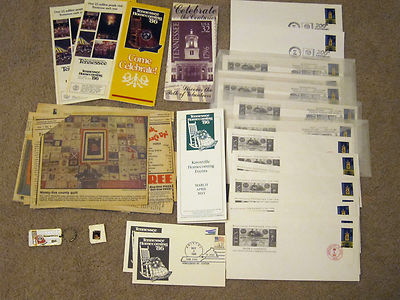 Title (ebay affiliate link): 1986 Tennessee Homecoming Keychain Pin Stamp Cover Brochure Newspaper lot