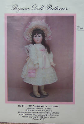 BYRON DOLL PATTERN 27" TETE JUMEAU 13 ANTIQUE DRESS