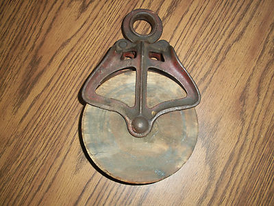 Title (ebay affiliate link): Antique Primitive Cast Iron & Wood Barn Hay Pulley
