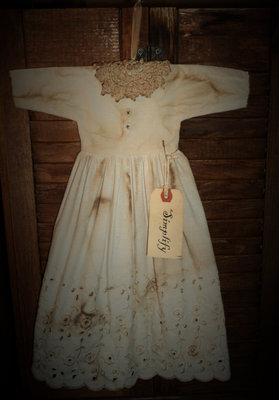 GRUNGY PRIMITIVE WALL~CUPBOARD DOLL DRESS ECRU VALENTINE~FOLK~DECO