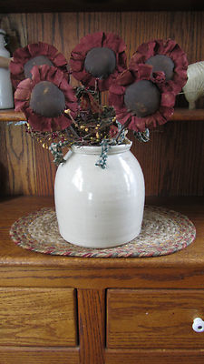 Title (ebay affiliate link): 5 BURGUNDY / WINE HANDMADE GRUNGED PRIMITIVE SUNFLOWER POKES FOR ANTIQUE CROCKS