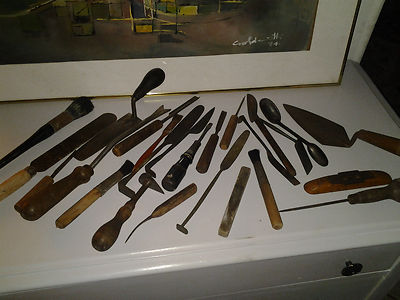 Large Lot of Wooden Handle Tools Carpentry Stone Carving Mason Masonry Tools