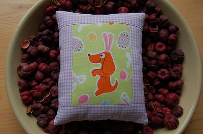 Title (ebay affiliate link): Primitive Easter Dachshund Mini Pillow, Lavendar Gingham, Ornie