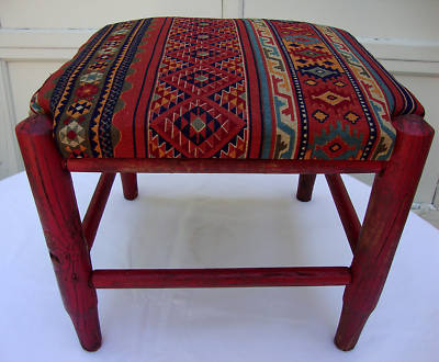 Title (ebay affiliate link): STURDY ANTIQUE OAK STOOL/BENCH WITH UPHOLSTERED SEAT