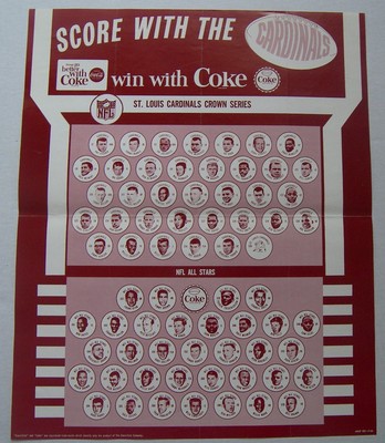 1966 COCA COLA Bottle Cap NFL ST. LOUIS CARDINALS Collection Sheet