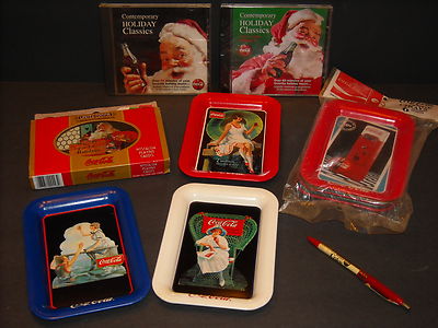 Vintage Coke/Coca Cola Trays,Pen,Christmas Playing Cards & CDs,Lot