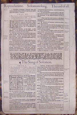 Title (ebay affiliate link): 1613 King James Folio Bible Leaf/RARE/TITLE SONG OF SOLOMON/WOODCUT HEADPIECE!!