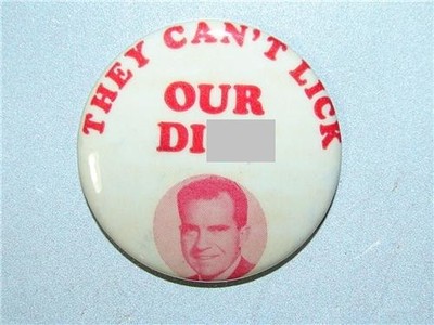 Title (ebay affiliate link): Original 60's vintage Richard Nixon They Can't Lick Our D**k campaign button