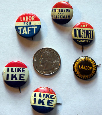 Title (ebay affiliate link): VINTAGE! 1936-1952 Campaign Buttons ~Lot of 6~ LANDON, TAFT, IKE, STEVENSON, FDR