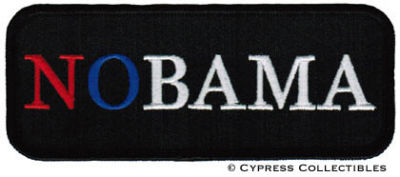 Title (ebay affiliate link): NOBAMA iron-on PATCH ANTI BARACK OBAMA TEA PARTY EMBLEM embroidered