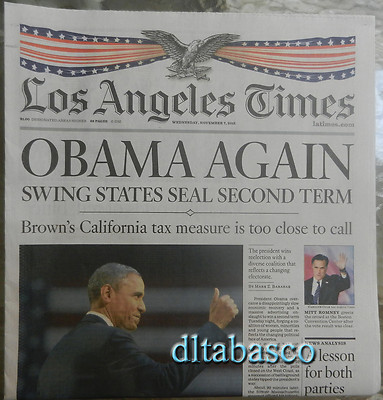 Title (ebay affiliate link): Obama Again LA Los Angeles Times Election Newspaper November 7, 2012 NEW!