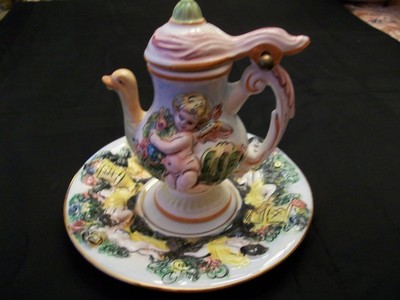Title (ebay affiliate link): CAPODIMONTE PORCELAIN MINI CHERUB PITCHER & PLATE SET MADE IN ITALY - NUMBERED