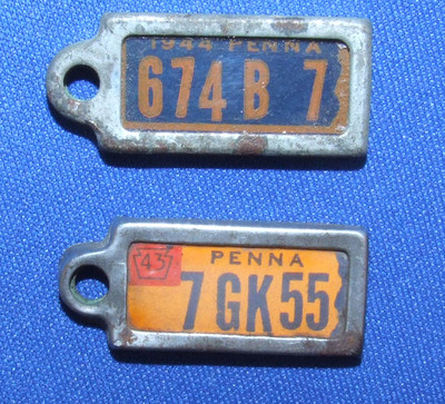 Title (ebay affiliate link): 2 vtg World War II Era 1943 1944 PA Pennsylvania DAV License Plate Keychains NR
